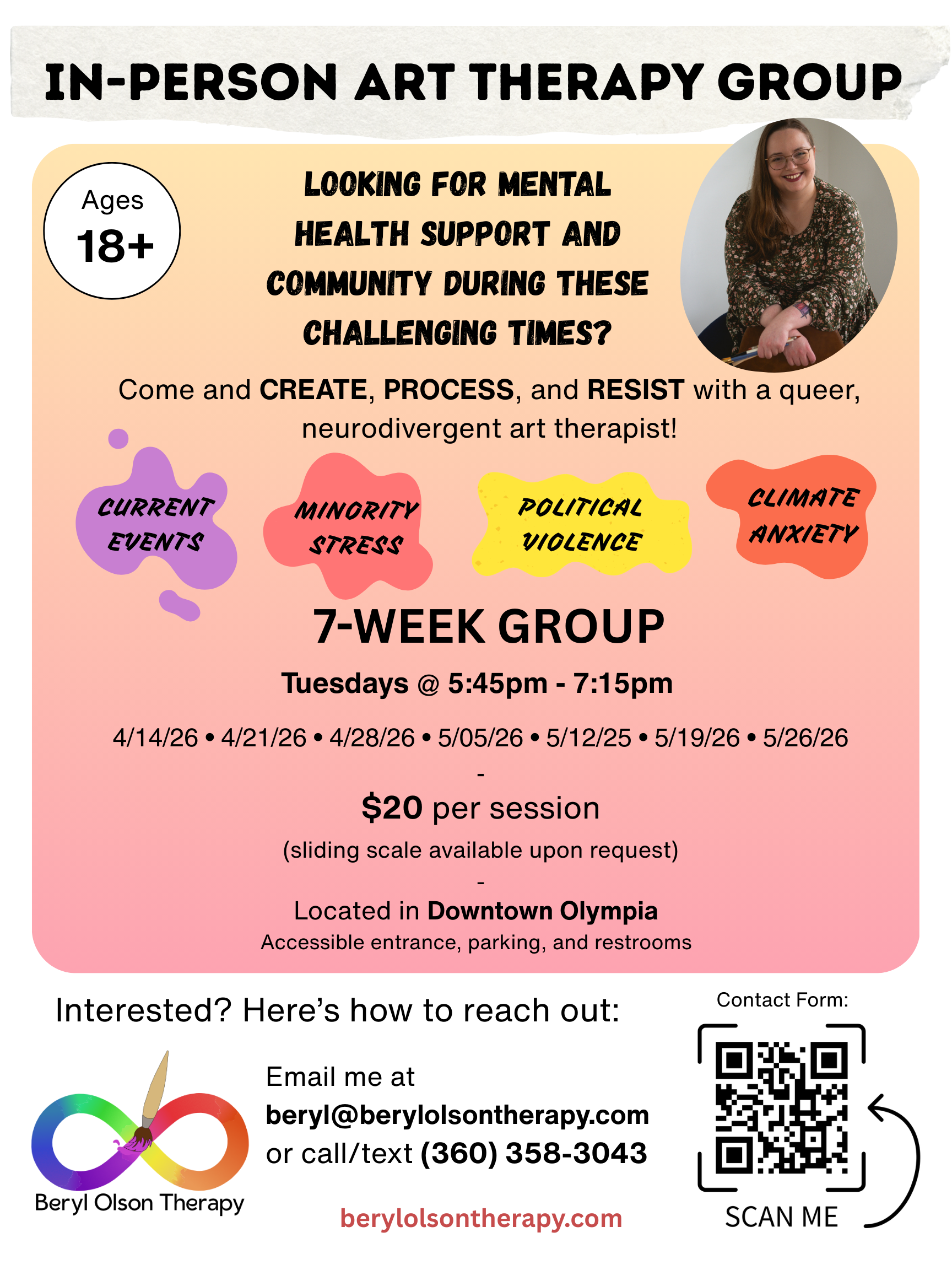 In-Person Art Therapy Group in Olympia 4/14/26 - 5/26/26